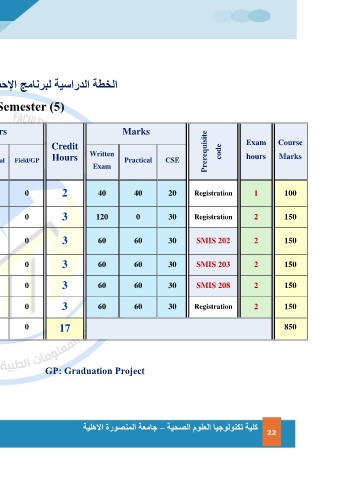 5 SMIS 305 Health Informatics I 2 2 0 0 3 60 60 30 SMIS 208 2 150