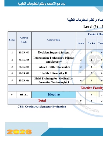 4 SMIS 310 Health Informatics II 2 2 0 0 3 60 60 30 SMIS 305 2 150
