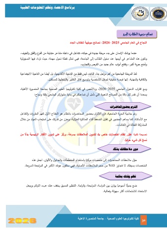 ددجلا بلاطلل ةهجوم حئاصن : 2026 - 2025 يعماجلا ماعلا يف حاجنلا