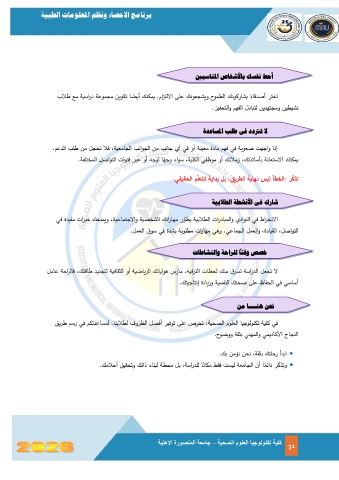 قيرط مسر يف مكتدعاسمل .انبلاطل فورظلا لضفأ ريفوت ىلع صرحن ، ةيحصلا مولعلا ايجولونكت ةيلك يف
