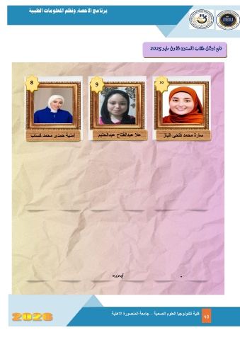 ةيبطلا تامولعلما مظنو ءاصحلاا جمانرب 2025 ويام لولاا ىوتسلما بلاط لئاوا عبات 8 9 10 باسك دمحم ىدمح ةينما ميلحلادبع حاتفلادبع لاع زابلا ىحتف دمحم ةراس ةيلهلاا ةروصنملا ةعماج – ةيحصلا مولعلا ايجولونكت ةيلك 43