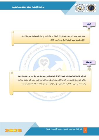ةيبطلا تامولعلما مظنو ءاصح لإا جمانرب ةيؤرلا ةلاس رلا . ةيلهلاا ةروصنملا ةعماج – ةيحصلا مولعلا ايجولونكت ةيلك 5