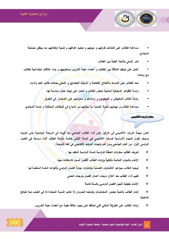 : ةلحرملا هذه يف يميداكلأا دشرملا تابجاو مهأ نمو يعماجلا ماع لا نم لولأا يسار دلا
