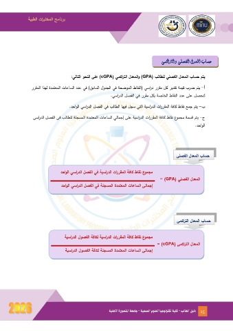 :يلا تلا وحنلا ىلع  (cGPA)  يمكارتلا لدعملاو ) GPA ( بلاط لل يلصفلا لدعم لا باسح متي