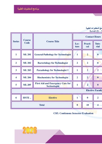 4     ML 204      Biochemistry for Technologist   2        2       0        0        3        60       60       30    Registration   2      150