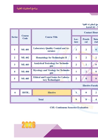 2     ML 402       Hematology for Technologist II    1        2       2        0        3        60       60      30    ML 307        1       150