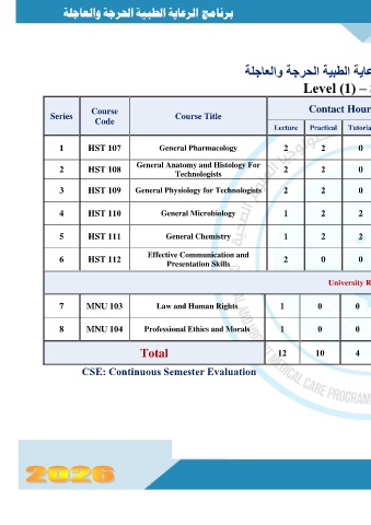 3 HST 109 General Physiology for Technologists 2 2 0 0 3 60 60 30 Registration 2 150