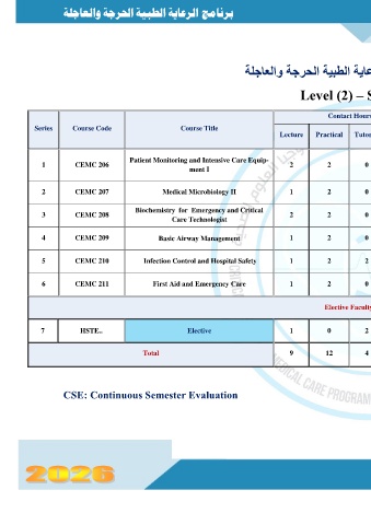 2 CEMC 207 Medical Microbiology II 1 2 0 0 2 40 40 20 CEMC 202 1 100