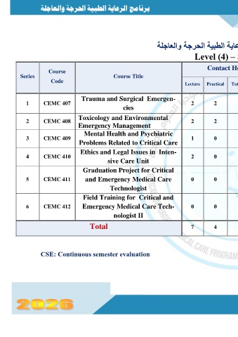 6 CEMC 412 Emergency Medical Care Tech- 0 0 0 8 2 0 0 100 CEMC 311 100
