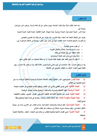 ناجل عبس ىلع نيعزوم ،ةيسارد ةعفد لك نع نيلثمم مضيو ،ةعماجلا بلاط لثمي انايك بلاطلا داحتا دعي ُ