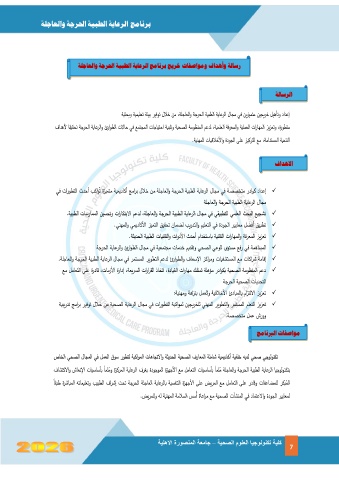 ةيثحبو ةيميلعت ةئيب ريفوت للاخ نم ،ةلجاعلاو ةجرحلا ةيبطلا ةياعرلا لاجم يف نيزيمتم نيجيرخ ليهأتو دادعإ