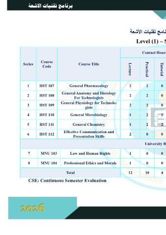 1     HST 107        General Pharmacology           2       2       0       0         3        60       60      30                 2      150