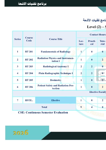 4     RT 204     Plain Radiographic Technique I   2       2        0        0        3        60       60      30   Registration   2       150
