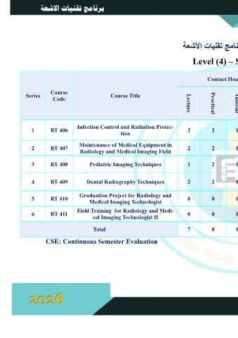 4      RT 409       Dental Radiography Techniques      2        2        0       0        3        60        60      30   Registration   2      150