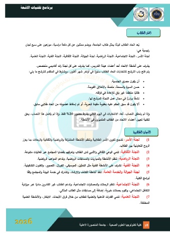 . ةيملعلا ةنجللا ،ةينفلا ةنجللا ،ةيفاقثلا ةنجللا ،ةلاوجلا ةنجل ،ةيضايرلا ةنجللا ،ةيعامتجلاا ةنجللا ،رسلأا ةنجل
