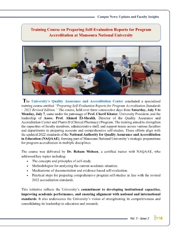 in Education (NAQAAE), forming part of Mansoura National University’s strategic preparations