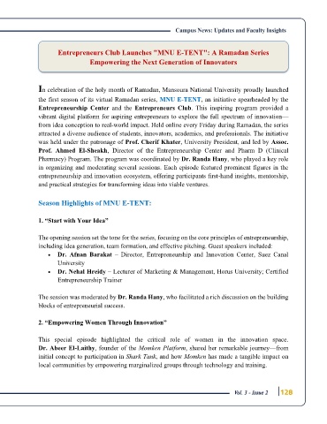 Entrepreneurs Club Launches "MNU E-TENT": A Ramadan Series