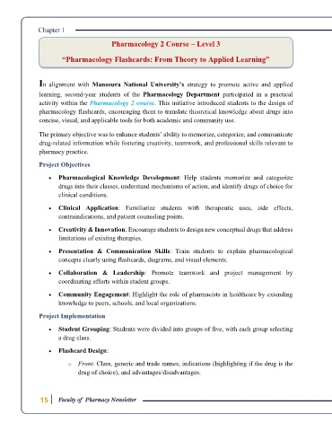 activity within the Pharmacology 2 course. This initiative introduced students to the design of
