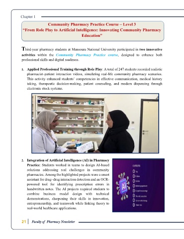 Third-year pharmacy students at Mansoura National University participated in two innovative