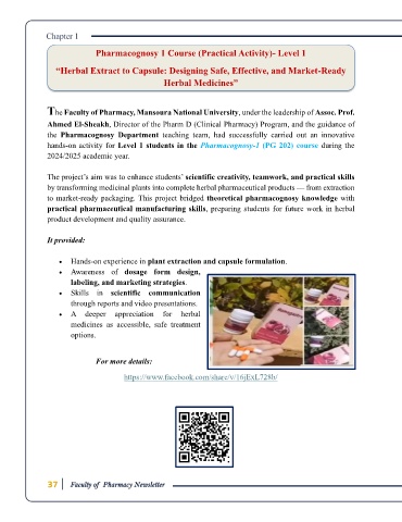 the Pharmacognosy Department teaching team, had successfully carried out an innovative