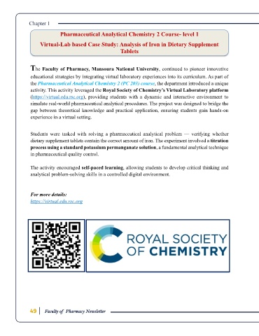 the Pharmaceutical Analytical Chemistry 2 (PC 203) course, the department introduced a unique