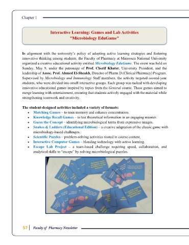 organized a creative educational activity entitled Microbiology EduGame. The event was held on