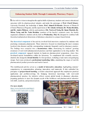 University President, the leadership of Assoc. Prof. Ahmed El-Sheakh, Director of Pharm D